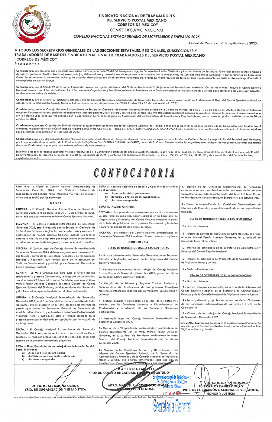 Convocatoria Consejo Nacional Extraordinario de Secretarios Generales 2025